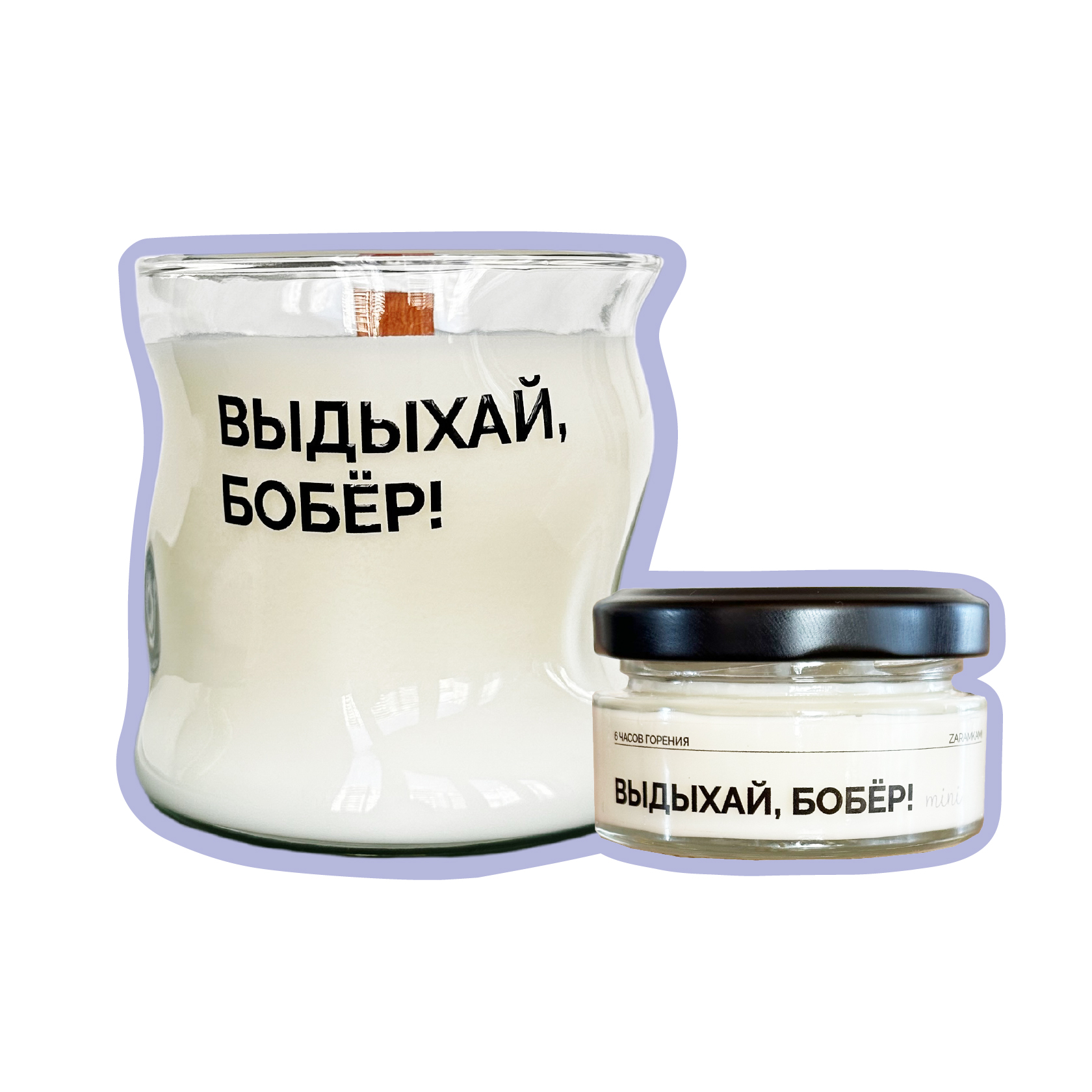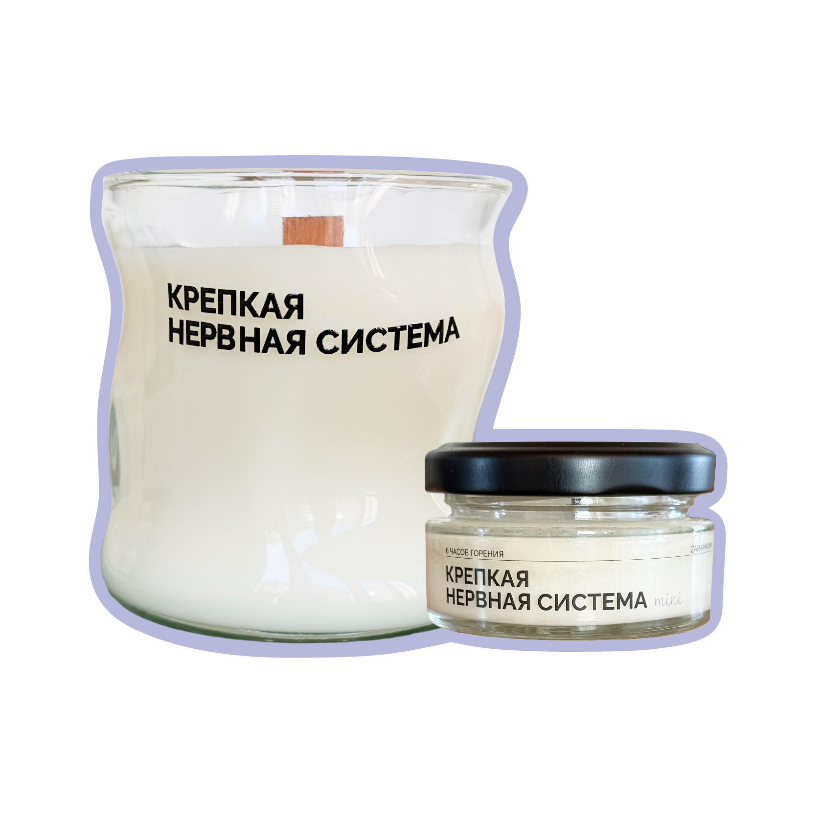 Состав: соевый воск и деревянный фитиль с треском/хлопковый фитиль Объем: 250 мл / 50 мл Время горения: 40 часов / 6 часов