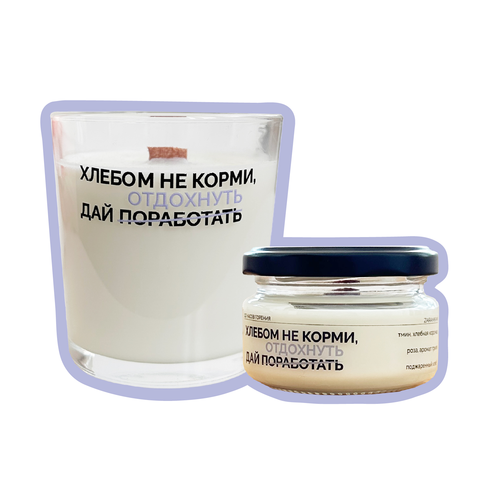 Состав: соевый воск и деревянный фитиль с треском/хлопковый фитиль Объем: 250 мл / 100 мл Время горения: 40 часов / 10 часов